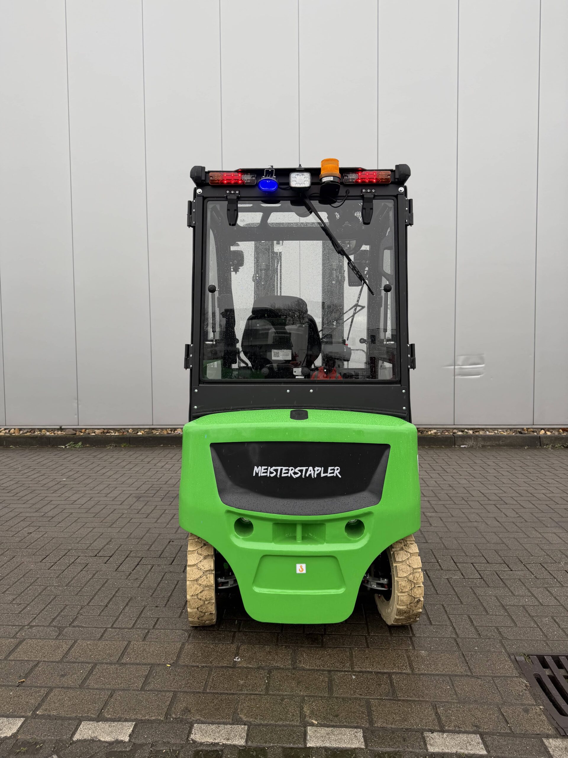 | Ausstattung | 1.200 mm Zinken, 3. und 4. Ventil, Batterie Heizsystem, Bluespot, Externes Ladegerät, Fingertip Steuerung, LCD-Display, LED Beleuchtung, Nicht kreidende Reifen, Seitenschieber, Triplex Mast, Vollkabine mit Heizung, Zinkenverstellgerät |